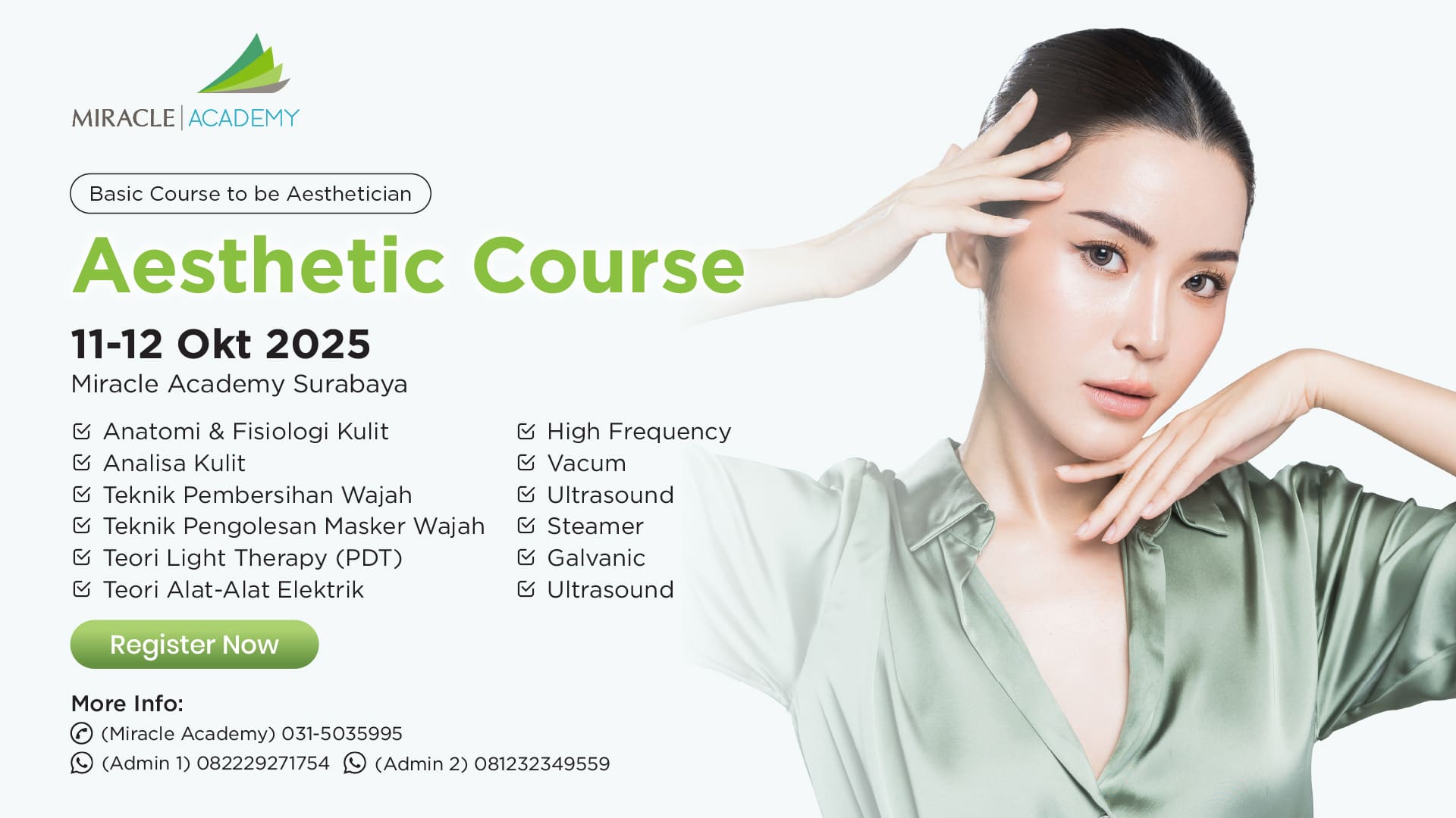 Miracle Academy adalah sebuah lembaga pelatihan yang bertujuan untuk menciptakan sumber daya manusia yang unggul di industri estetika. Miracle Aesthetic Academy adalah nama awal dari Miracle Academy telah mendapatkan ijin dari Dinas Pendidikan Kota Surabaya sebagai lembaga pelatihan Non Formal sejak 2008. Miracle Academy telah membuka pelatihan-pelatihan di bidang aesthetic.